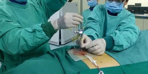 “为了准确进针位置和深度,并且避开骨骼、血管、神经等,在手术治疗时需要对患者部位进行多次CT扫描定位,增加了患者不必要的损伤和医疗费用。”